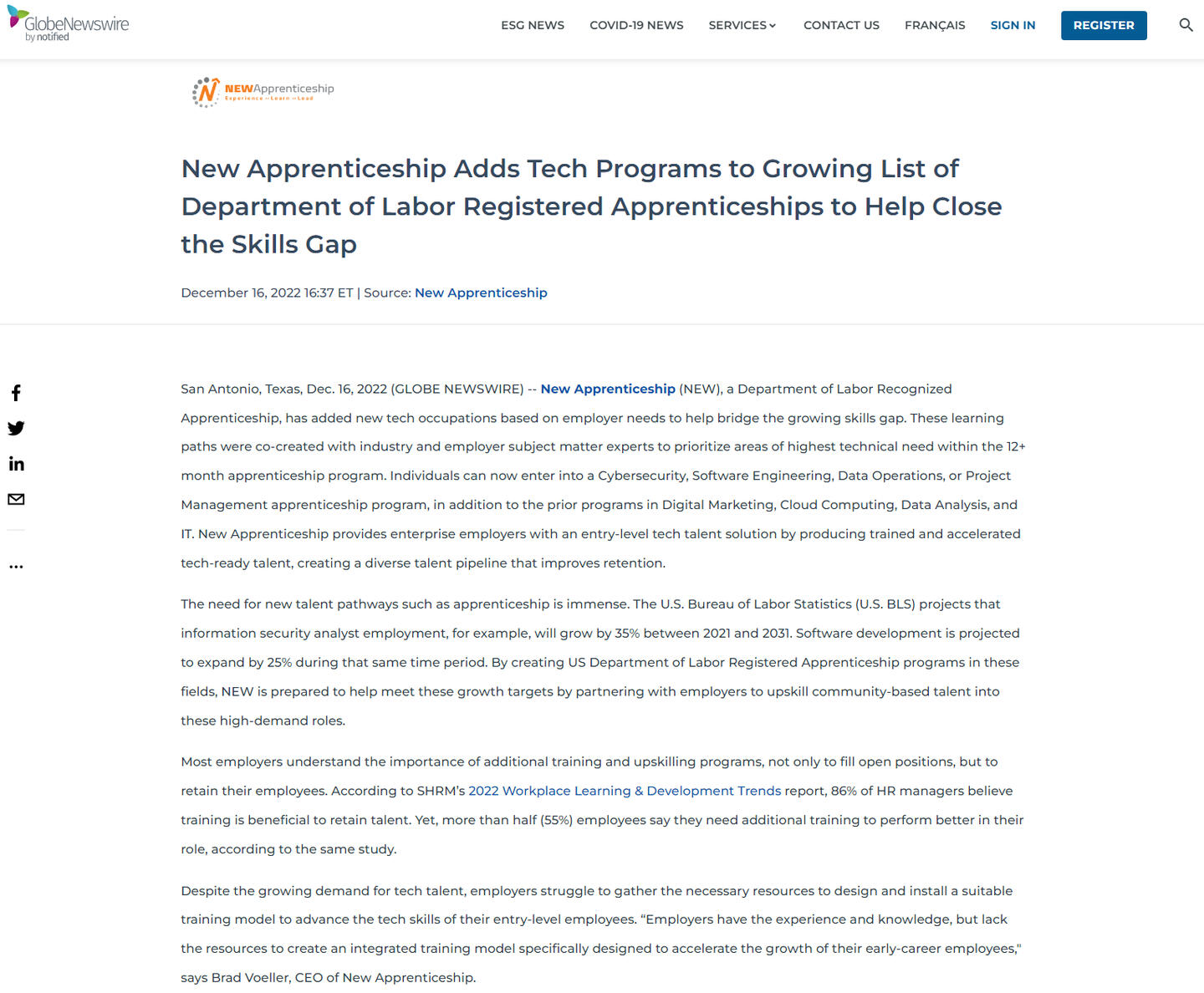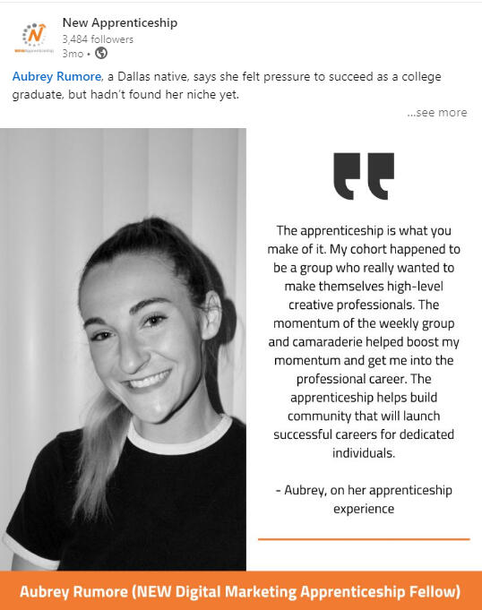 Contributed to writing a press release announcing new tech apprenticeship programs being added to help close the skills gap between entry-level talent and employers.